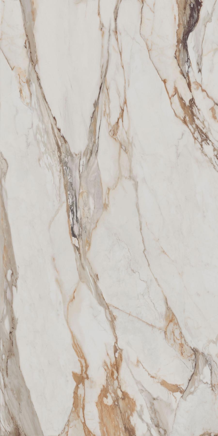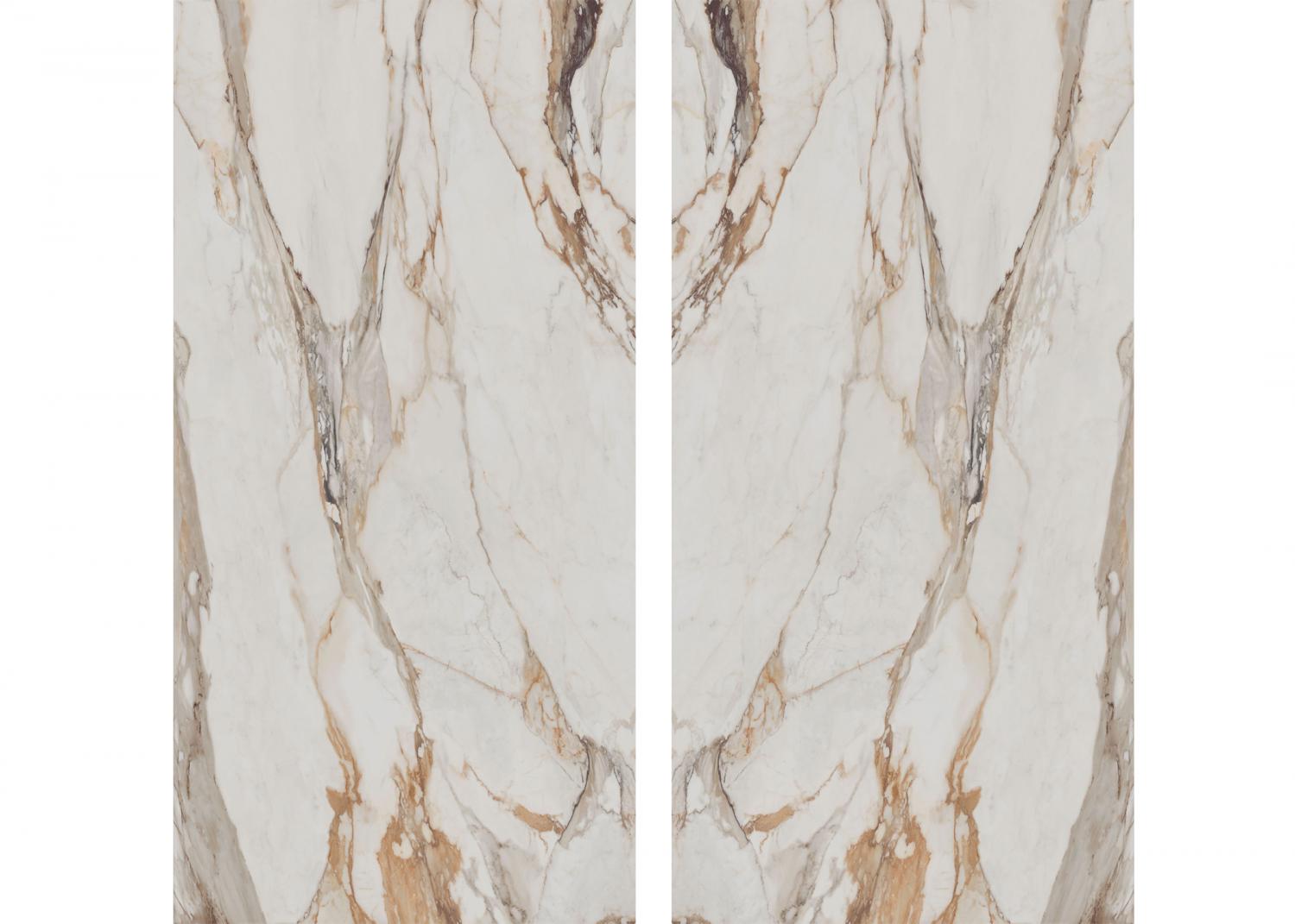 Материалът е вдъхновен от скъпоценна версия на мрамор калаката, характеризиращ се с широки вени, които са богати на нюанси на цвета. Изобразяването довежда до изграждането на сложно и в същото време елегантно графично движение.